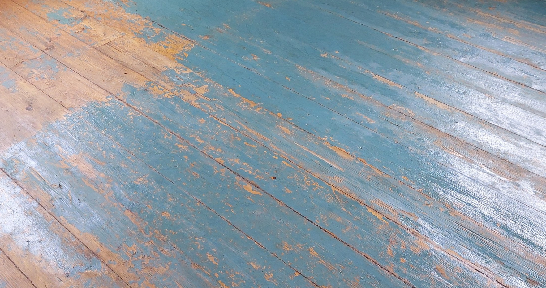 Weiter ging es im Lindgrün-Blauen Raum, hier waren wir neugierig, was sich unter dem Linoleum verbergen würde und schon war entschieden, den Holzdielenboden freizulegen. Schönstes altes Holz mit einem einzigartig blauen Farbanstrich, der etwas Vintage Feeling vermittelt, da er nur teilweise vorhanden ist. Die beiden Linoleumschichten waren schnell entfernt, die darunterliegende Pappschicht, die zum Glück nur genagelt, nicht geklebt war, ließ sich in Feinarbeit mit Wasser und Schrubber allmählich entfernen. Das war echte Drecksarbeit, lohnte sich aber allemal, weil Holz einfach so natürlich und warm ist und das entstandene Flair uns an die Atelierräume in Berlin und Wien, wo wir an Kunstunis studierten, erinnert.